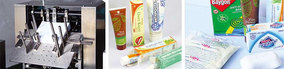 該機(jī)型適用于軟膏類物品(牙膏、藥膏)及軟包裝類物品的自動(dòng)裝盒。其工作過程為牙膏或物品的傳送;藥品說明書的傳送(可進(jìn)行1至4折的自動(dòng)折疊);紙盒自動(dòng)成形與傳送,將物料連帶折好的說明書同時(shí)裝入紙盒內(nèi);并自動(dòng)完成打批號、兩端紙舌封口等繁雜額封裝過程(可配熱熔膠機(jī))。